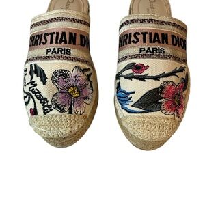 Step out in style with these Dior espadrilles. Featuring a beautiful floral design, these cream and brown shoes offer both elegance and comfort. Perfect for any casual outing.