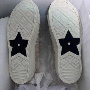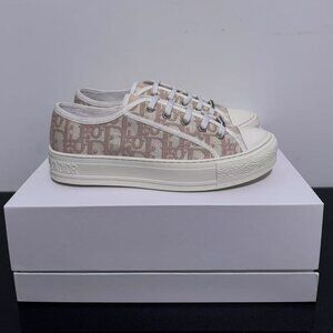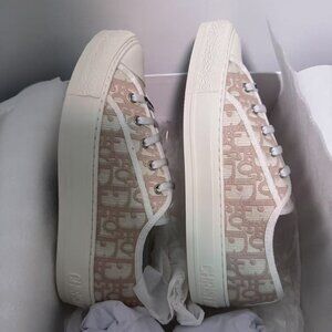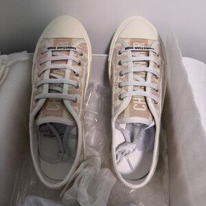 Up for grabs is this **authentic pair of Christian Dior pink embroidered canvas sneakers**—a perfect blend of high fashion and streetwear charm. The delicate floral embroidery and soft blush hue make these shoes a standout piece for any stylish wardrobe.