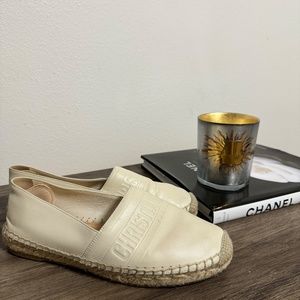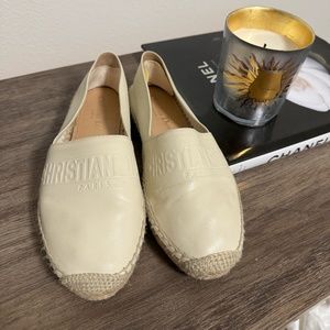 DIOR Granville OffWhite Lambskin Leather Logo Embroidered Espadrilles size 37