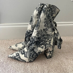 DIOR HUGGY TOILE DE JOUY FABRIC ANKLE HEELED BOOTS