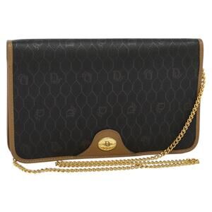 DIOR Honeycomb Canvas Chain Bag Pvc Leather Black Gold