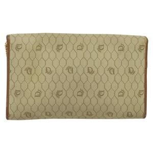DIOR Honeycomb Canvas Chain Shoulder Bag Pvc Beige Gold