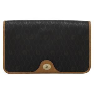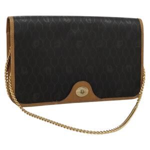 DIOR Honeycomb Canvas Chain Shoulder Bag Pvc Black Gold
