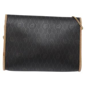 DIOR Honeycomb Canvas Chain Shoulder Bag Pvc Black Gold