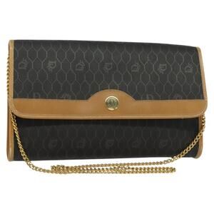 DIOR Honeycomb Canvas Chain Shoulder Bag Pvc Black Gold