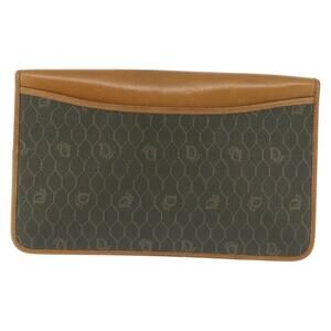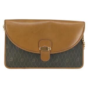 DIOR Honeycomb Canvas Chain Shoulder Bag Pvc Brown Gold