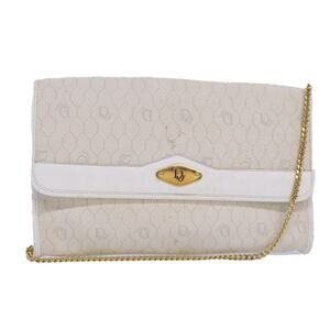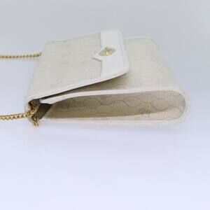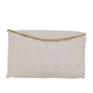 DIOR Honeycomb Canvas Chain Shoulder Bag Pvc Leather White