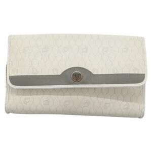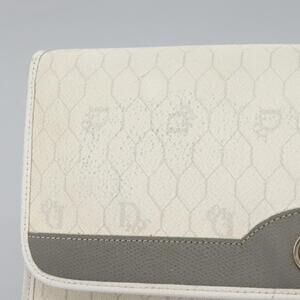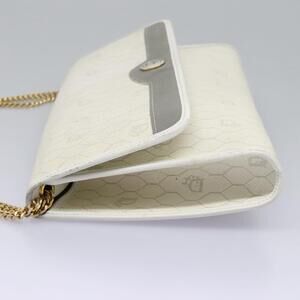 DIOR Honeycomb Canvas Chain Shoulder Bag Pvc Leather White