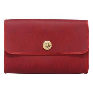 DIOR Honeycomb Canvas Chain Shoulder Bag Pvc Red Gold