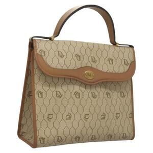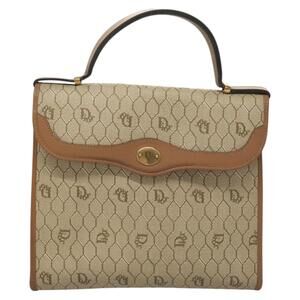 DIOR Honeycomb Canvas Hand Bag Pvc Leather Beige