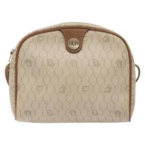DIOR Honeycomb Canvas Shoulder Bag Pvc Beige Gold