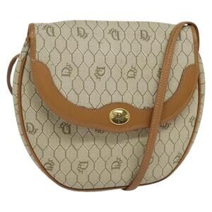 DIOR Honeycomb Canvas Shoulder Bag Pvc Beige Gold
