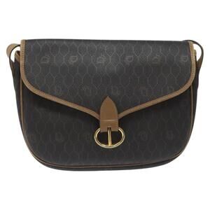 DIOR Honeycomb Canvas Shoulder Bag Pvc Black Brown Gold
