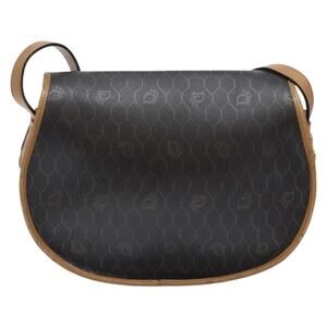 DIOR Honeycomb Canvas Shoulder Bag Pvc Black Gold