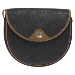 DIOR Honeycomb Canvas Shoulder Bag Pvc Black Gold