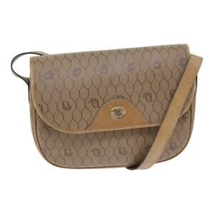 DIOR Honeycomb Canvas Shoulder Bag Pvc Brown Gold