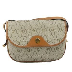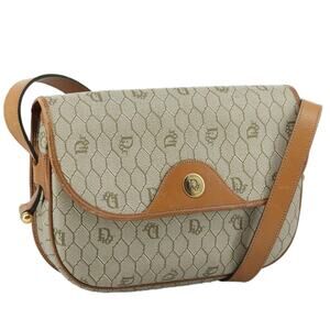 DIOR Honeycomb Canvas Shoulder Bag Pvc Leather Beige