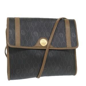 DIOR Honeycomb Canvas Shoulder Bag Pvc Leather Black