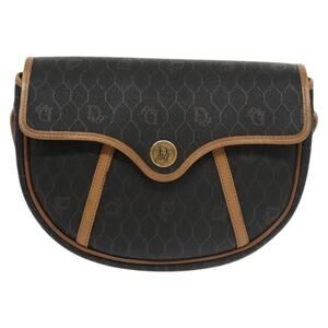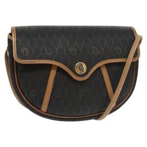 DIOR Honeycomb Canvas Shoulder Bag Pvc Leather Black