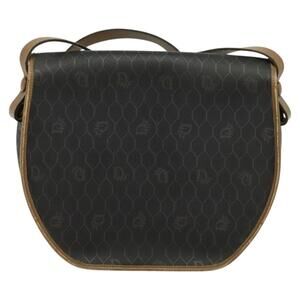 DIOR Honeycomb Canvas Shoulder Bag Pvc Leather Black Brown