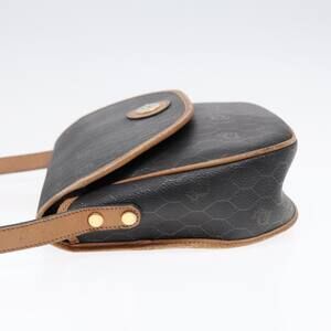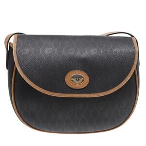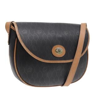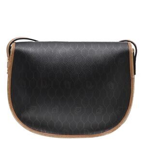 DIOR Honeycomb Canvas Shoulder Bag Pvc Leather Black Gold