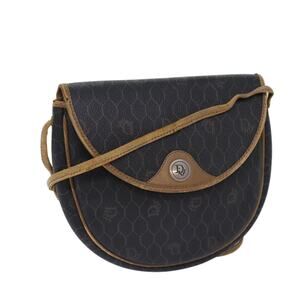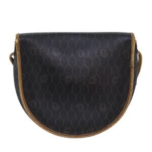 DIOR Honeycomb Canvas Shoulder Bag Pvc Leather Brown Silver