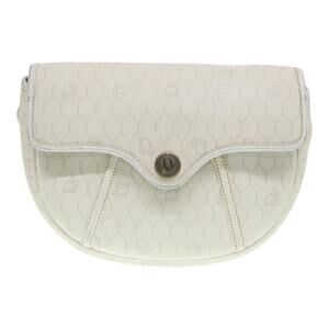 DIOR Honeycomb Canvas Shoulder Bag Pvc Leather White Gold