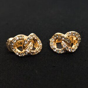 Authentic Christian Dior earrings with stunning sparkly gemstones like diamonds throughout, gold plated. The gems are arranges like an infinity logo or interlocking rings. Very beautiful!