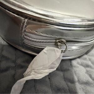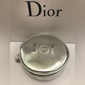 This elegant round silver pouch from Dior Joy is a limited edition piece, typically gifted in high-end perfume sets. Perfect for storing your beauty essentials or gifting to a Dior lover.
