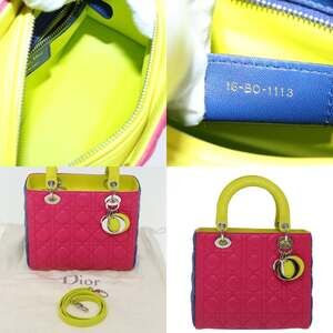 DIOR Lady DIOR Canage Hand Bag Lamb Skin Blue Pink