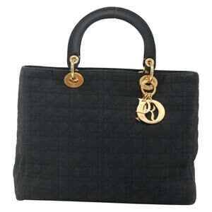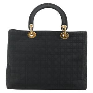DIOR Lady DIOR Canage Hand Bag Nylon Black Gold