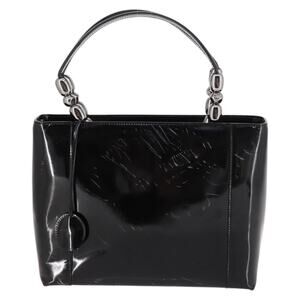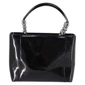 DIOR Maris Pearl Hand Bag Patent Leather Black Silver