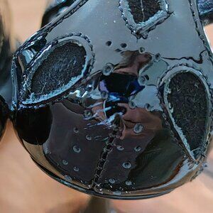 Black patent leather and suede upper