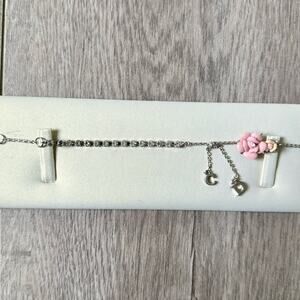 DIOR Pink Flower Silver Crystal Bracelet CD Charms Y2K with Box Authentic