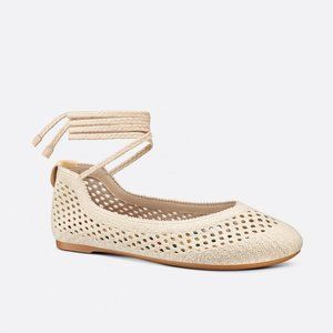 DIOR Poeme Mesh Embroidered Ankle Wrap Tie Ballerina Ballet Flats Shoes