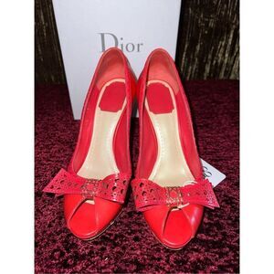 DIOR Red Leather Bow Peep Toe Platform Pumps Size 37.5