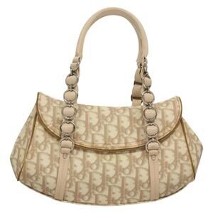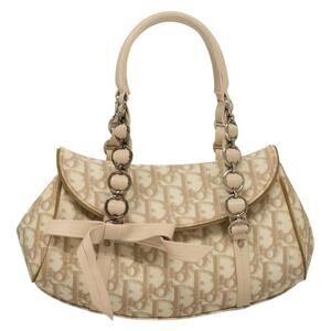 DIOR Romantic Chain Trotter Canvas Bag Pvc Beige Silver