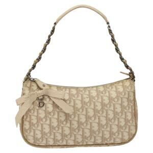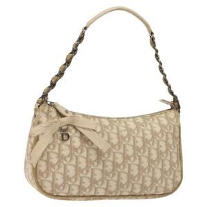 DIOR Romantic Chain Trotter Canvas Shoulder Bag Pvc Beige