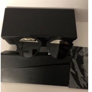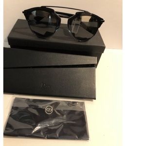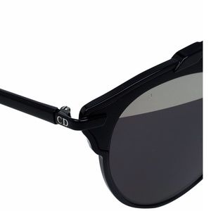 DIOR SO REAL Black - Gray and Silver Mirrored lens. :$495 BLACK LIGHTWEIGHT ACETATE AND METAL GRAY LENS WITH SILVER LINEAR MIRRORED LENSES CD LOGO ON EACH TEMPLE BLUE NOSE PADS HAND MADE IN ITALY SIZE - Eye 48mm - Bridge 22mm - Temples 140 mm These Sunglasses include All Original Packaging: Cristian Dior Authenticity Card, Christian Dior Case, Cleaning Cloth and Dior Box.
