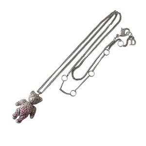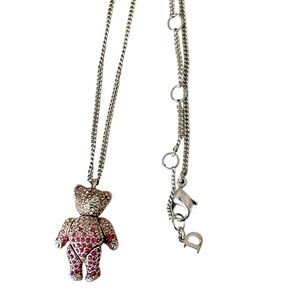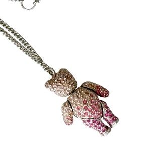 DIOR Silver & Pink Gradient Crystal Teddy Bear Necklace