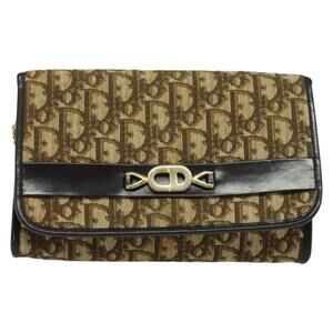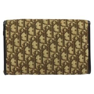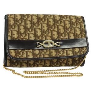 DIOR Trotter Canvas Chain Shoulder Bag Beige Gold