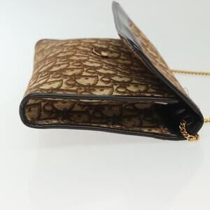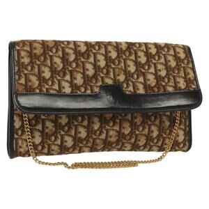 DIOR Trotter Canvas Chain Shoulder Bag Brown Gold