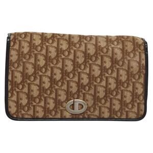 DIOR Trotter Canvas Chain Shoulder Bag Brown Gold