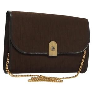 DIOR Trotter Canvas Chain Shoulder Bag Dark Brown Gold