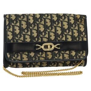 DIOR Trotter Canvas Chain Shoulder Bag Navy