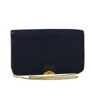 DIOR Trotter Canvas Chain Shoulder Bag Navy Gold