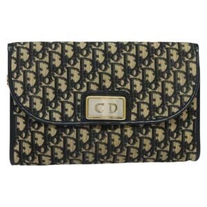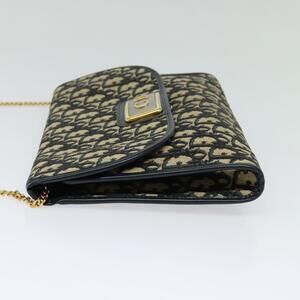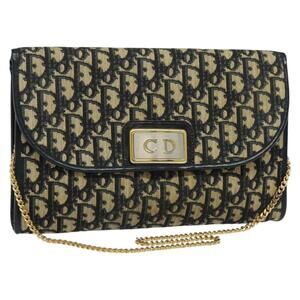 DIOR Trotter Canvas Chain Shoulder Bag Navy Gold