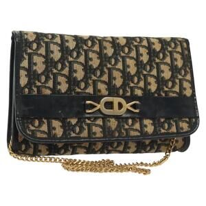 DIOR Trotter Canvas Chain Shoulder Bag Navy Gold