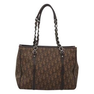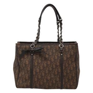 DIOR Trotter Canvas Romantic Tote Bag Pvc Brown Silver