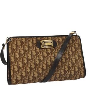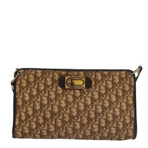 DIOR Trotter Canvas Shoulder Bag Beige Dark Brown Gold